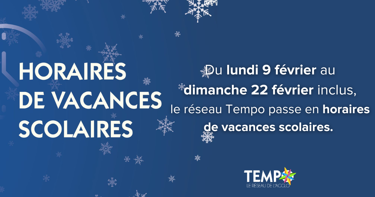 Du lundi 9 février au dimanche 22 février inclus, le réseau Tempo passe en horaires de vacances scolaires. 🚌